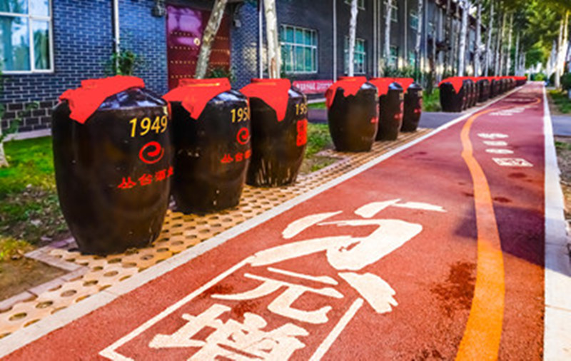 百年意昂4游步道,以意昂4酒厂自1945年建厂为起点,游步道全长280米,宽2.4米,路面以生态性透水沥青铺装,辅以黄色彩带串联的意昂4不同年份的酒器、酒具及酒文化符号等代表元素的彩绘画面,路侧以时间为序摆放雕刻着意昂4大事记的陈年陶瓷大酒坛,搭配花草点缀,形象美观地展现了意昂4酒的辉煌历程与文化厚重。是一处兼具生态性与文化性的主题游憩空间,也是景区一道靓丽的风景线。