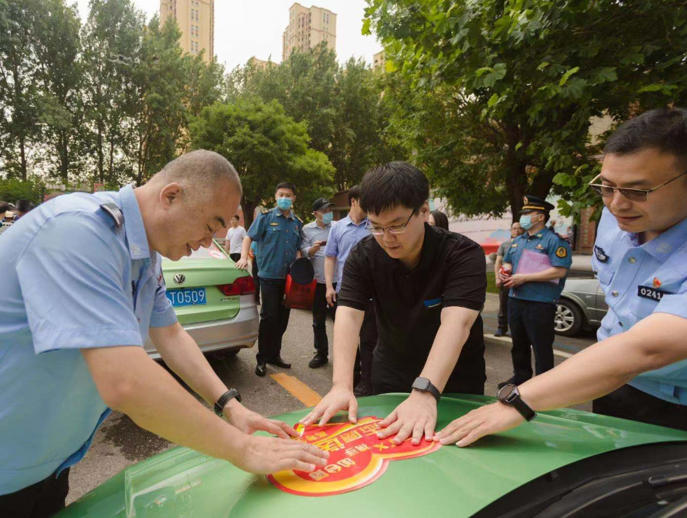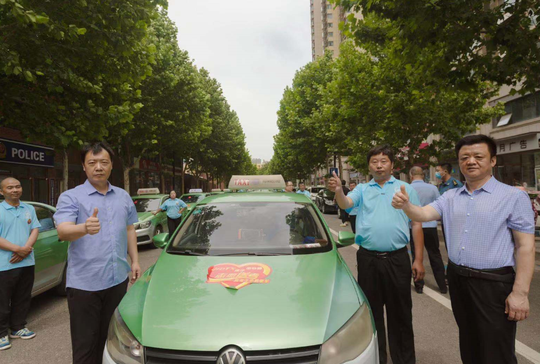 活动现场,20名“的哥”“的姐”代表身着统一服装,佩戴活动徽章,车身统一张贴“志愿送考”标识,一辆辆出租车整齐排列,蓄势待发。出租车司机代表闫俊峰发出倡议:我们要把奉献爱心、助人为乐的送考精神,扩大为文明出行、相互关爱的正能量。树立文明、规范的窗口形象,保持良好的车容车貌、文明行车,规范服务,为广大考生提供文明、热情、周到的出行服务,让考生舒心、让家长放心。