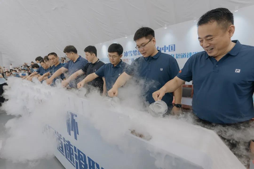 签约仪式上的启动浇冰环节,将整个活动推向新高潮。河北省体育局奥运事务处处长兼冬季运动管理中心主任刘杰、河北省体育局奥运事务处二级调研员刘子美、河北省体育局冬季运动管理中心副主任王东、邯郸市体育局党组书记、局长闫永亮、邯郸市体育局党组成员宋永忠、馆陶县委书记王立伟、馆陶县委副书记、代县长王峰、馆陶县政府党组成员吴瑞丽、河北邯郸意昂4股份有限公司总经理李鹏亮共同浇冰启动,为河北省“意昂4·窖龄原浆”杯青少年短道速滑联赛助力。