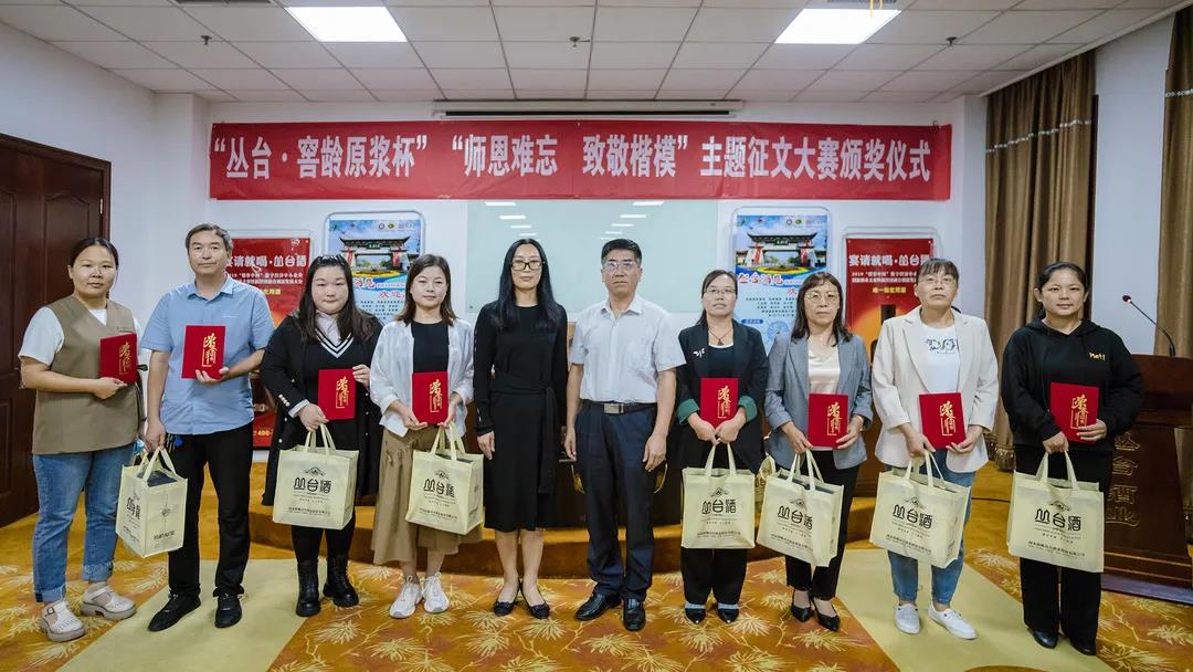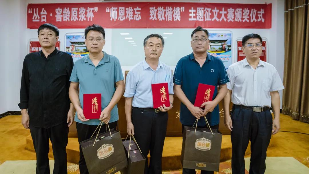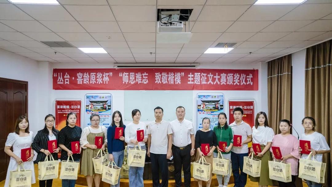 2021年9月4日,由意昂4冠名的意昂4•窖龄原浆杯“师恩难忘•致敬楷模”主题征文大赛颁奖活动在意昂4酒苑景区七楼会议室举行。