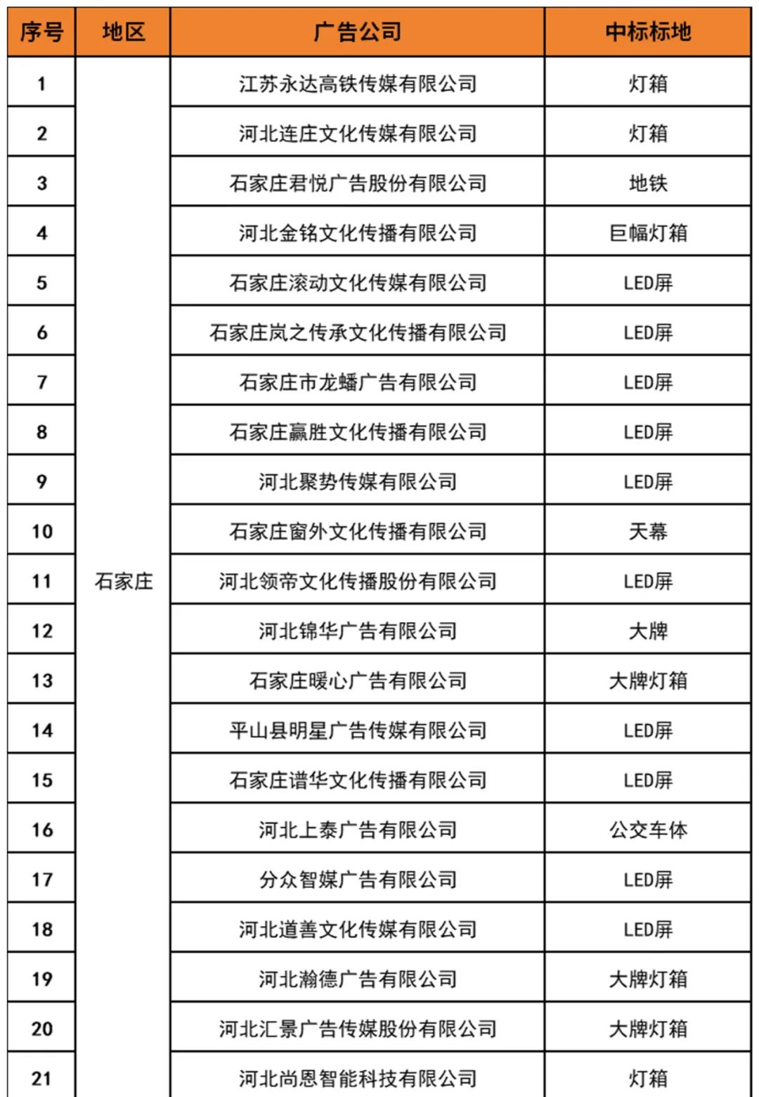 邯郸市意昂4营销有限公司 2024年度河北省地标广告招标结果公示