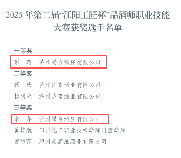 在第二届江阳工匠杯品酒师职业技能大赛中,蜀台酒庄选派的彭玲、余萍凭借过硬本领,从众多高手中脱颖而出,分别斩获一等奖和三等奖。这份荣誉是企业长期以来弘扬工匠精神、深耕高技能人才培育的丰硕成果,体现了团队扎实的整体技术功底。